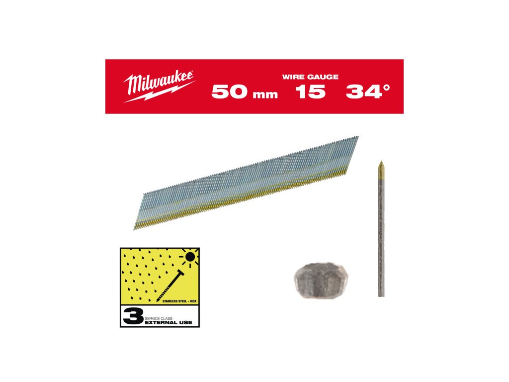 MILWAUKEE Finisérske sponky, D-hlava, inox 15G 34° SC3 - 1,8 x 50 mm (2500 ks/bal)