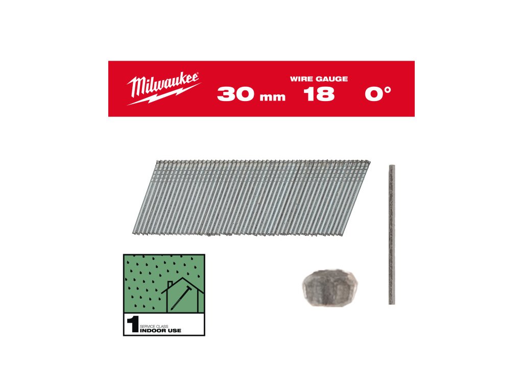 MILWAUKEE Konektory na finálne práce, bezhlavé, pozinkované 18G 0° SC1 - 1,05 x 1,25 x 30 mm (5000 ks/bal)