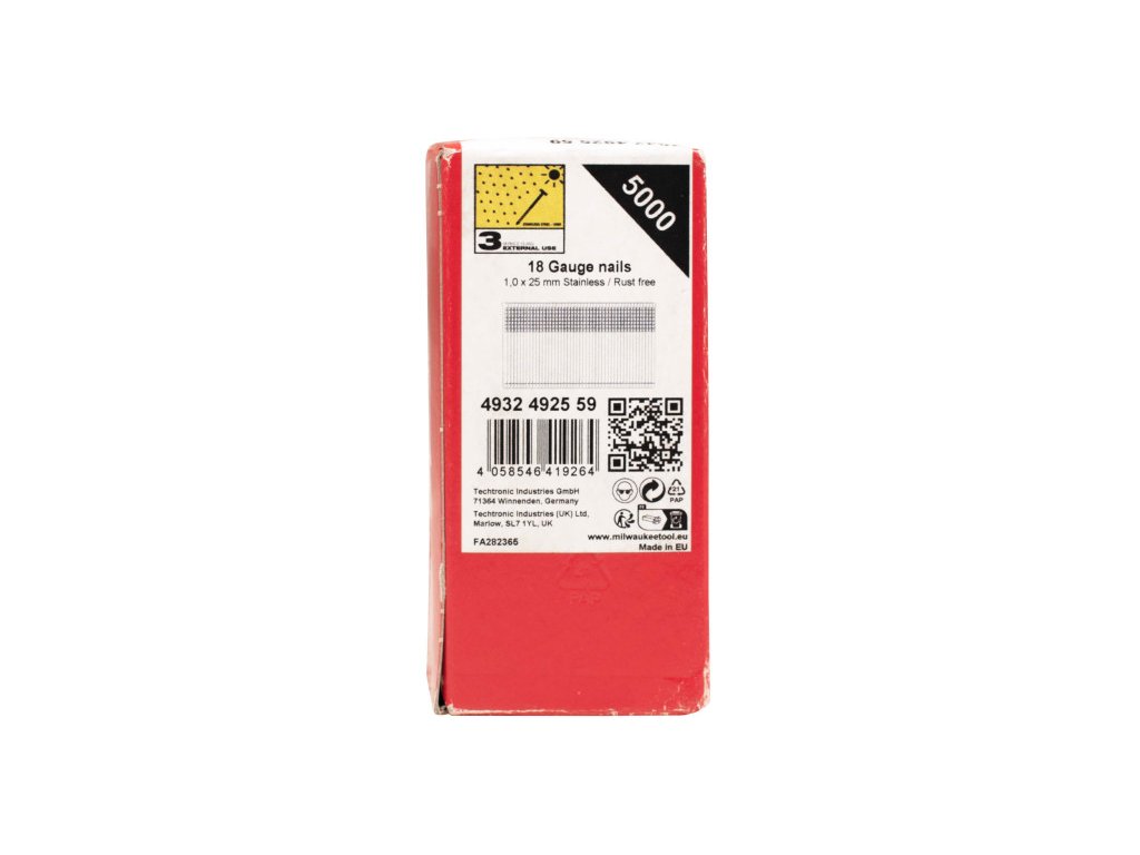 Technické údaje Materiál Nerez Rozmery hlavy [mm] 2,0 Rozmery (mm) 1,05 x 1,25 Množstvo v balení 5,000 Klincovačky a sponkovačky [Konfigurátor] Makita - FN001 Na Paslode - Finish IM5; NT1850 ;Dewalt - DCN680;Senco - F-18 Finish Klincovačka Trieda prevádzky3 Uhol klincov (°)0° Celková dĺžka (mm)25 Mierka drôtu18 Číslo výrobku4932492559 Kód EAN4058546419264