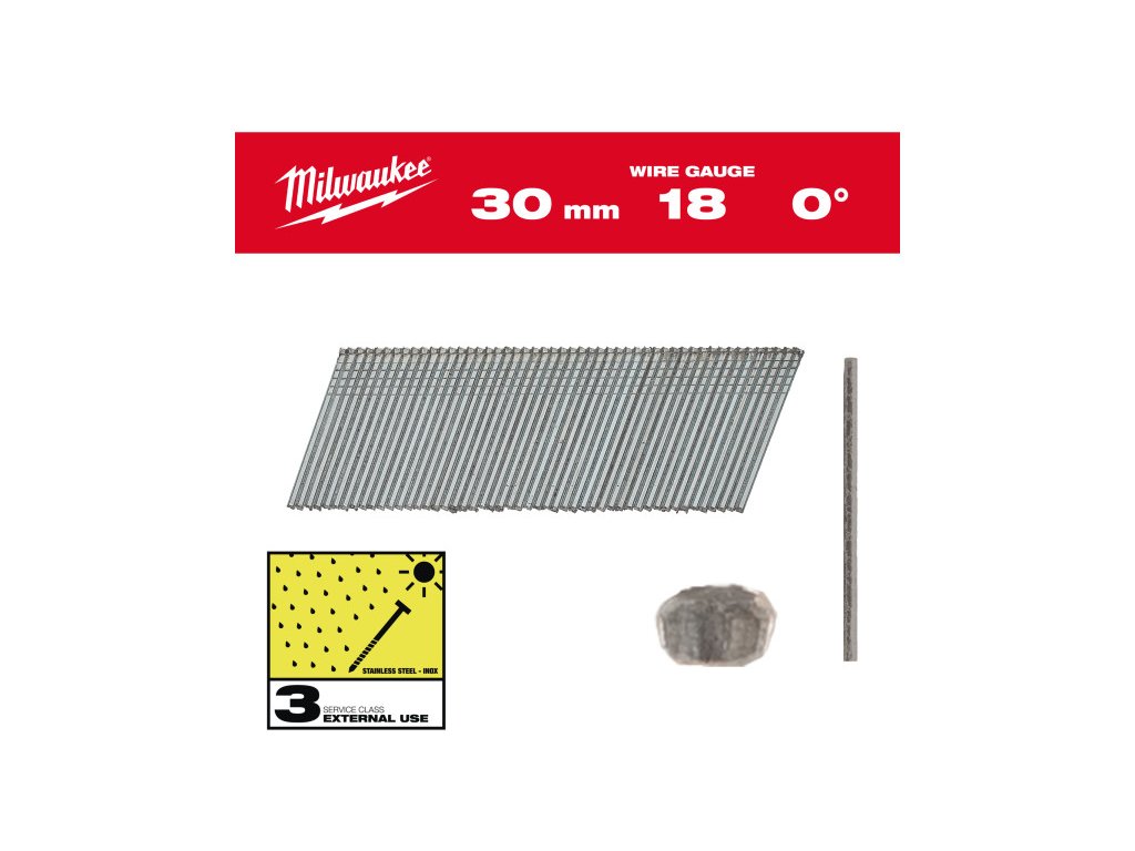 MILWAUKEE Konektory na finálne práce, bezhlavé, inox, 18G 0° SC3 - 1,05 x 1,25 x 30 mm (5000 ks/bal)