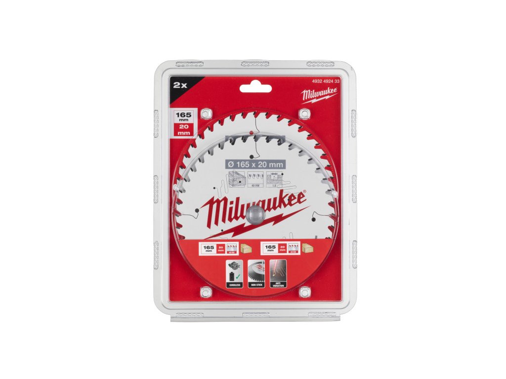 MILWAUKEE Pílový kotúč na drevo 165 x 20 x 1,6 mm /40T ATB (2ks/bal)
