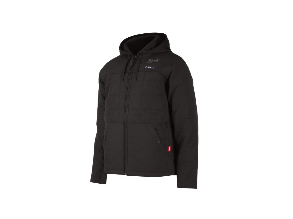 - A szénszálas fűtőelemekkel ellátott M12™ fűthető kabát M12™ akkumulátorral működik, amely hőt hoz létre és vezet el a mellkason, a háton és a vállakon.
