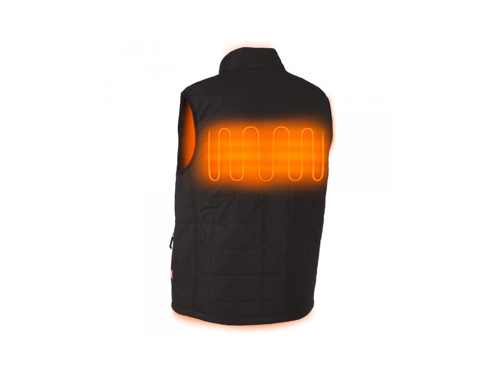 - A szénszálas fűtőelemekkel ellátott M12™ fűthető kabát M12™ akkumulátorral működik, amely hőt hoz létre és vezet el a mellkason, a háton és a vállakon.