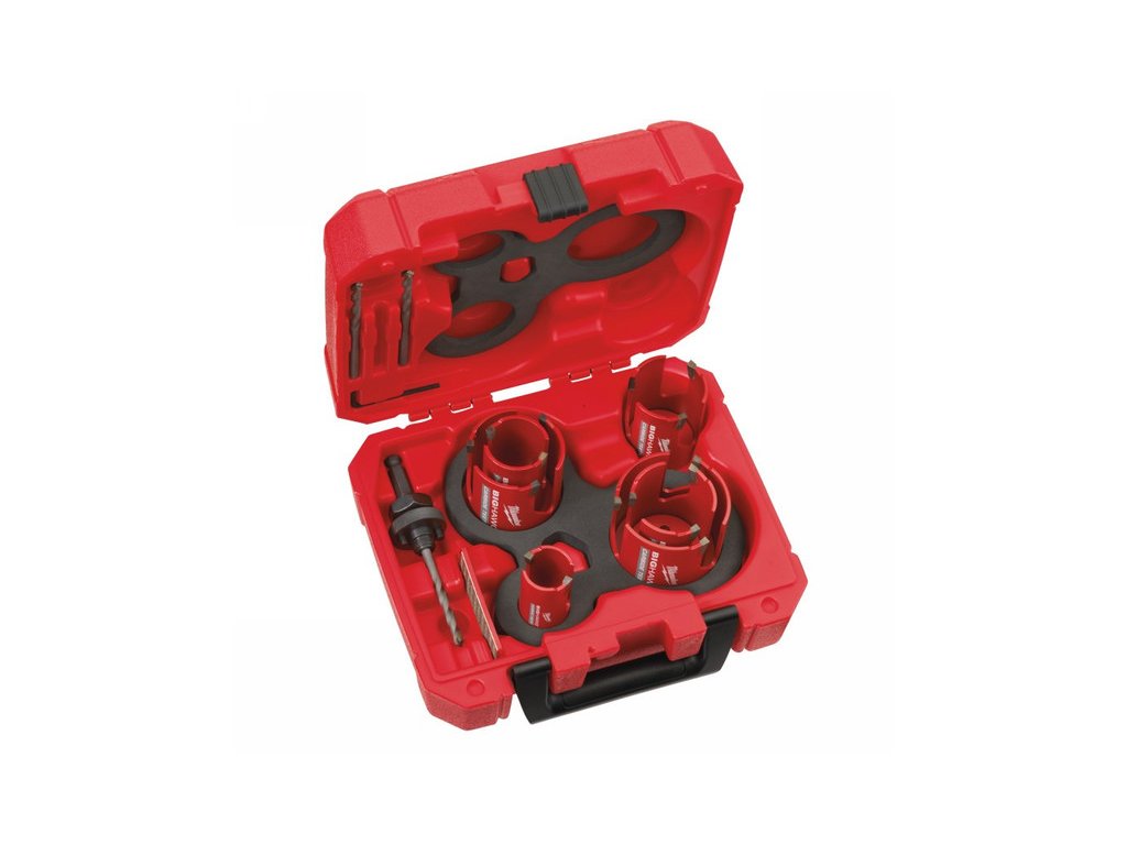 Tartalom | BIG HAWG™ többféle anyaghoz: 35, 44, 51, 57, 68, 76 mm. 1 x befogó és központosító fúró. 2 x központosító fúró. 1 x gyémánt reszelő. 1 x kulcs |