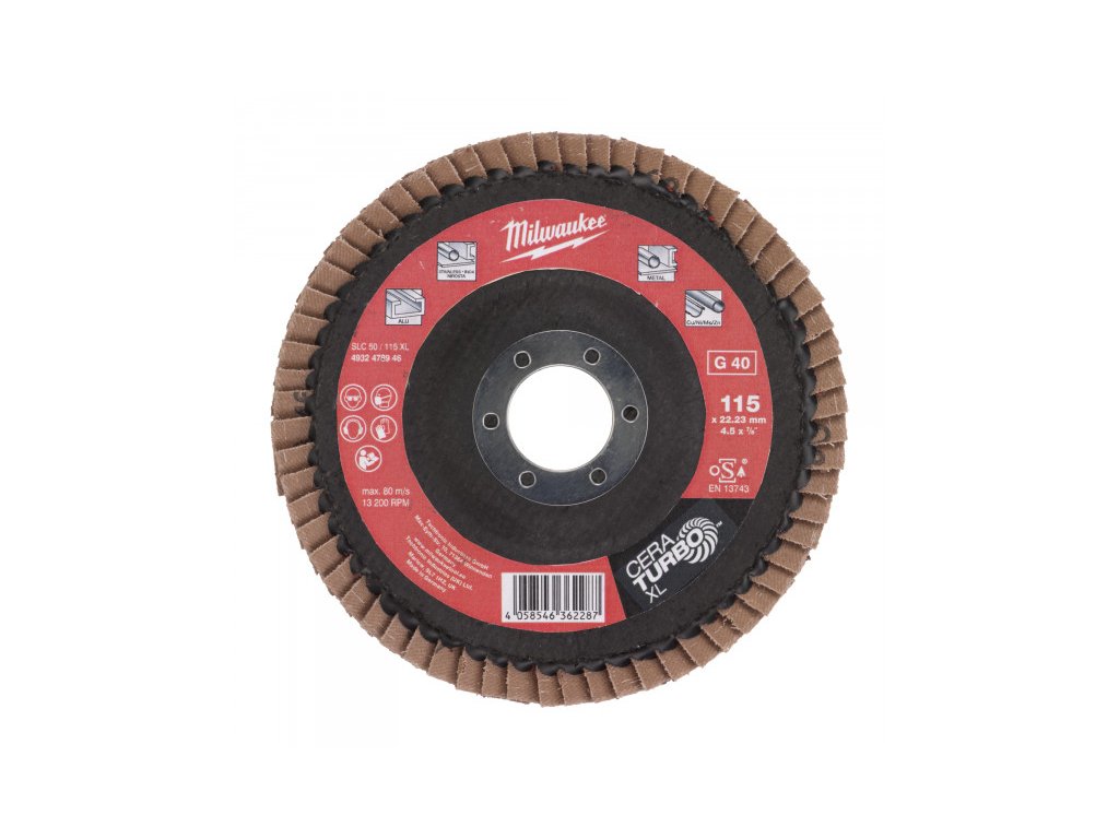 MILWAUKEE Lamellový brúsny kotúč 115 x 22,2 mm / P40 keramický zrno