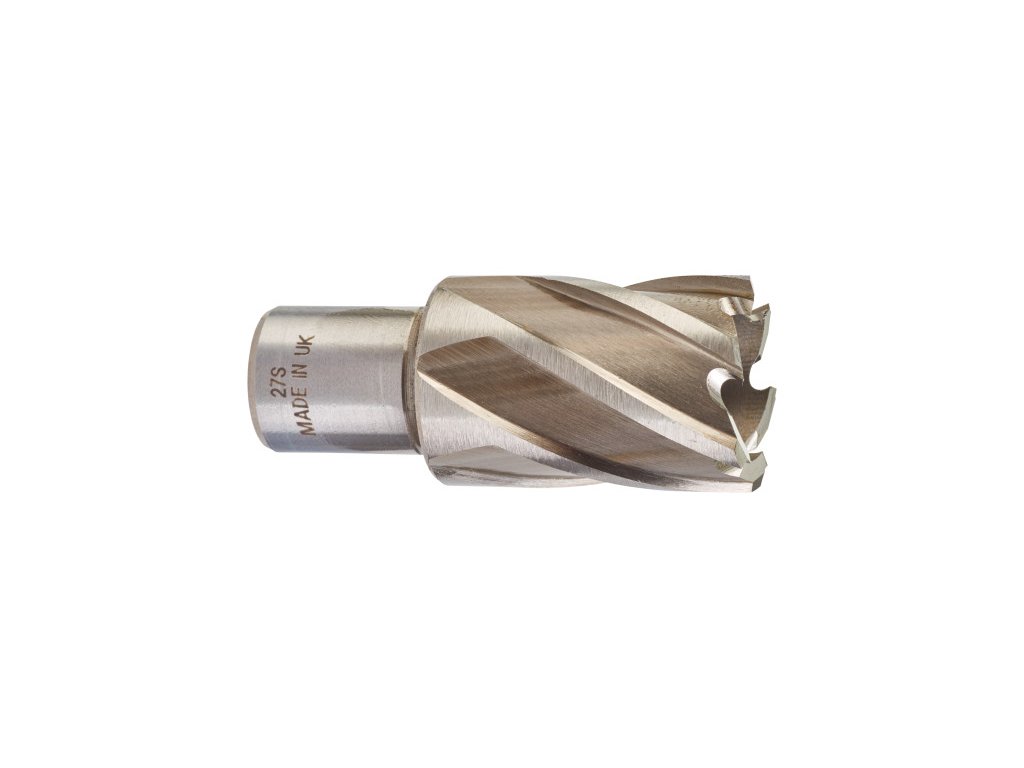 - 100 %-kal gyorsabb - Sebesség- és idő megtakarítást érhetünk el a következő tényezőknek köszönhetően: Először a magfúró az anyagot a lyuk szélén vágja meg a csigafúróval ellentétben, amely a lyukat teljes átmérőjében fúrja. Másodszor a két agresszív kialakítású éles szögenkénti vágóél előnye, hogy gyorsabb előtolást és kisebb vágási ellenállást biztosít.