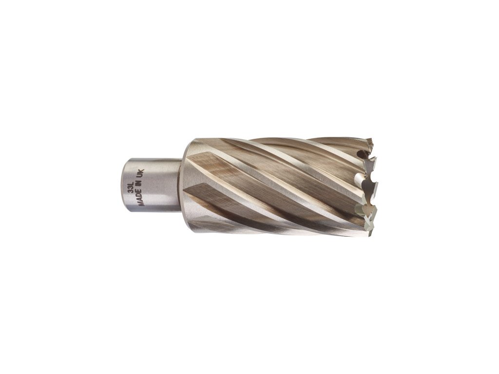 - 100 %-kal gyorsabb - Sebesség- és idő megtakarítást érhetünk el a következő tényezőknek köszönhetően: Először a magfúró az anyagot a lyuk szélén vágja meg a csigafúróval ellentétben, amely a lyukat teljes átmérőjében fúrja. Másodszor a két agresszív kialakítású éles szögenkénti vágóél előnye, hogy gyorsabb előtolást és kisebb vágási ellenállást biztosít.