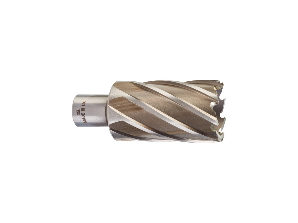 - 100 %-kal gyorsabb - Sebesség- és idő megtakarítást érhetünk el a következő tényezőknek köszönhetően: Először a magfúró az anyagot a lyuk szélén vágja meg a csigafúróval ellentétben, amely a lyukat teljes átmérőjében fúrja. Másodszor a két agresszív kialakítású éles szögenkénti vágóél előnye, hogy gyorsabb előtolást és kisebb vágási ellenállást biztosít.