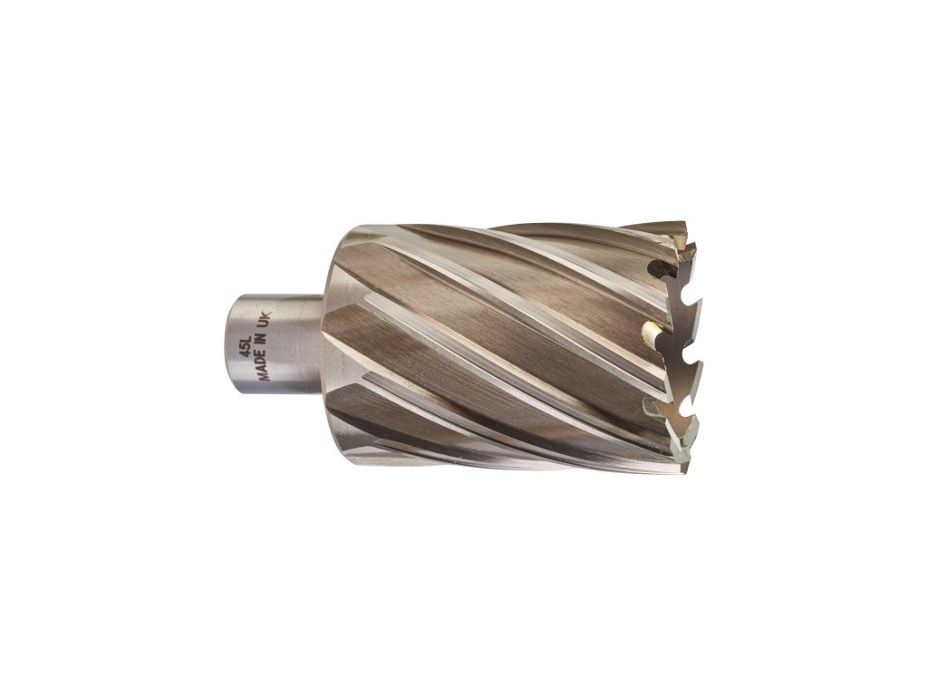 - 100 %-kal gyorsabb - Sebesség- és idő megtakarítást érhetünk el a következő tényezőknek köszönhetően: Először a magfúró az anyagot a lyuk szélén vágja meg a csigafúróval ellentétben, amely a lyukat teljes átmérőjében fúrja. Másodszor a két agresszív kialakítású éles szögenkénti vágóél előnye, hogy gyorsabb előtolást és kisebb vágási ellenállást biztosít.