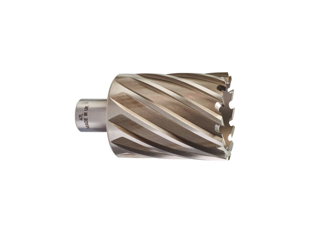 - 100 %-kal gyorsabb - Sebesség- és idő megtakarítást érhetünk el a következő tényezőknek köszönhetően: Először a magfúró az anyagot a lyuk szélén vágja meg a csigafúróval ellentétben, amely a lyukat teljes átmérőjében fúrja. Másodszor a két agresszív kialakítású éles szögenkénti vágóél előnye, hogy gyorsabb előtolást és kisebb vágási ellenállást biztosít.