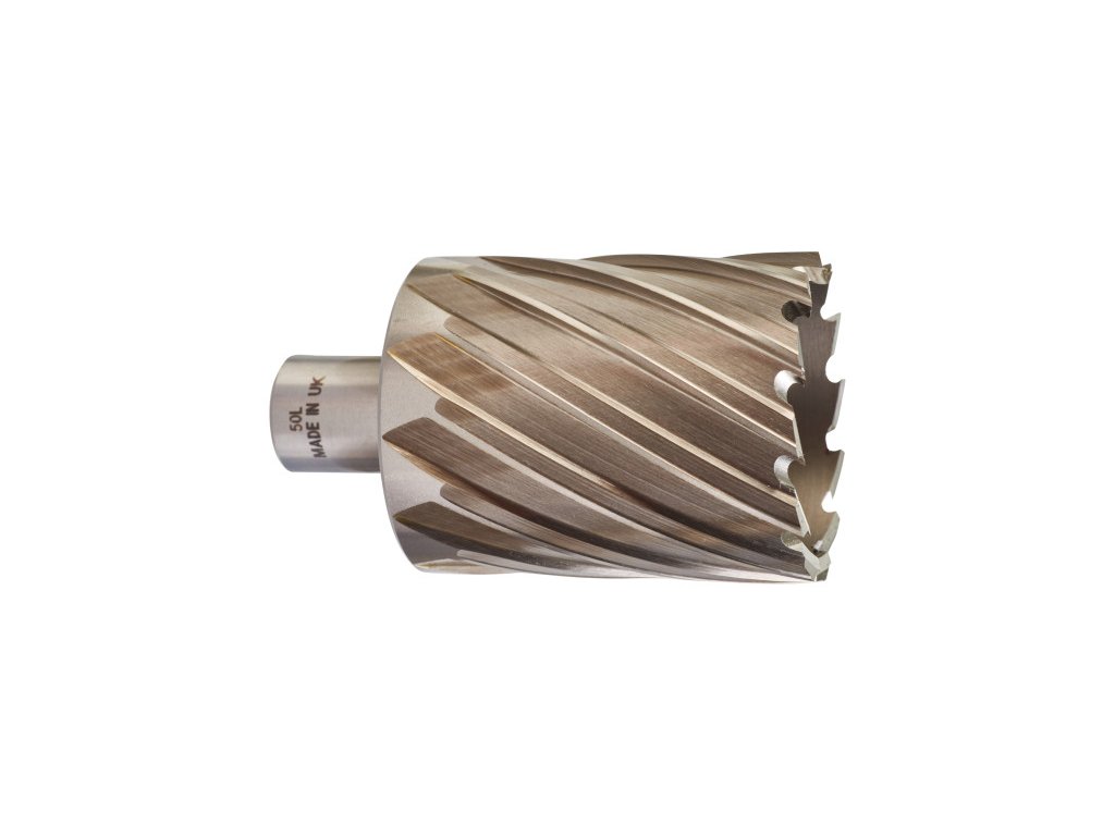 - 100 %-kal gyorsabb - Sebesség- és idő megtakarítást érhetünk el a következő tényezőknek köszönhetően: Először a magfúró az anyagot a lyuk szélén vágja meg a csigafúróval ellentétben, amely a lyukat teljes átmérőjében fúrja. Másodszor a két agresszív kialakítású éles szögenkénti vágóél előnye, hogy gyorsabb előtolást és kisebb vágási ellenállást biztosít.