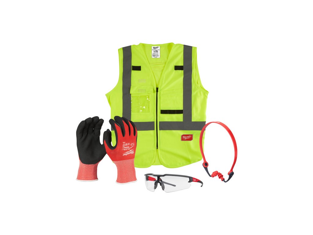 MILWAUKEE Ochranný balík (Ochranné okuliare, rukavice, ušné zátky, vesta) 10/XL