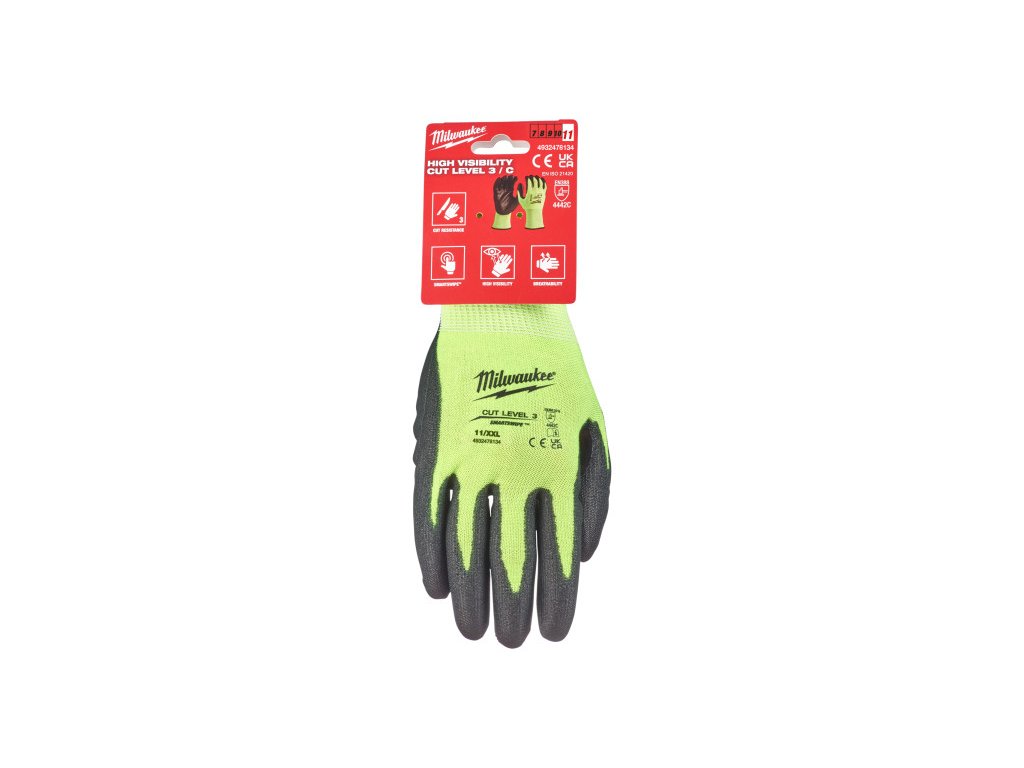 MILWAUKEE Ochranné rukavice odolné voči prerezaniu, 3. úroveň prerezania XXL/11 Hi-Vis