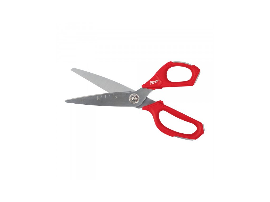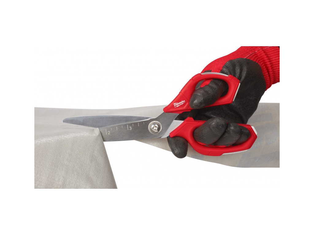 Vlastnosti Rezné hrany z tvrdokovu pre maximálnu odolnosť Čepeľ z nehrdzavejúcej ocele pre dlhú životnosť Celokovové puzdro: celokovové držadlo, rukoväť odolná proti zlomeniu a pádu Technológia skrutkového upevnenia: chráni pred uvoľnením čepelí, zaisťuje presné rezanie Možno použiť aj s rukavicami Držiak ukazováka pre rovnomerné pohodlnejšia práca S laserovým vrúbkovaným pravítkom na hrane čepele umožňuje meranie a strih súčasne Zakrivené nožnice s mikrozúbkovanými čepeľami pre maximálnu odolnosť Zakrivené nožnice s 60° zakrivenou hlavou, čo umožňuje držať ruku nad hlavou materiál na rezanie Technické údaje Dĺžka (mm)95 Množstvo v balení1 Celková dĺžka (mm) 230 Číslo položky 4932479409 EAN kód 4058546372033 Hmotnosť Hmotnosť (unca) 180