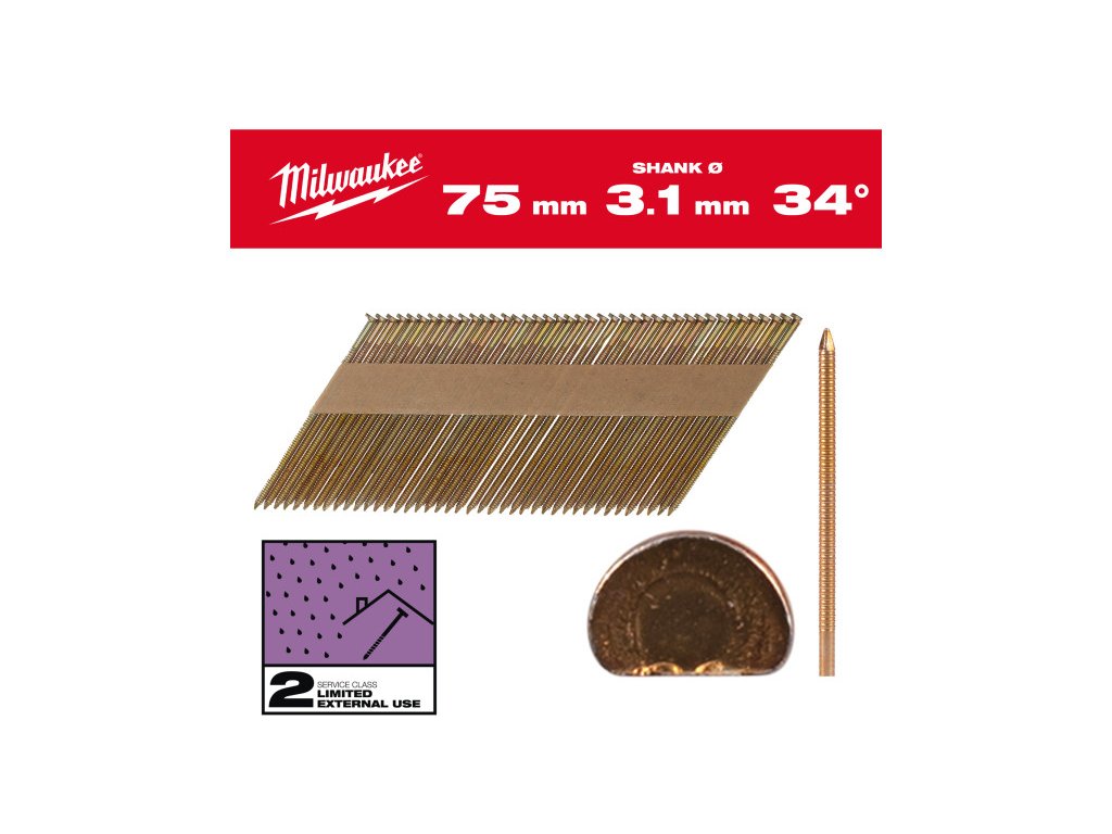 MILWAUKEE Stavebné sponky, D-hlava, pozinkované 34° SC2 - 3,1 x 75 mm (2200 ks/bal)