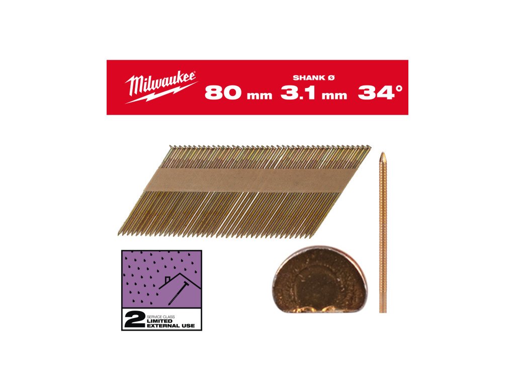 MILWAUKEE Stavebné sponky, D-hlava, pozinkované 34° SC2 - 3,1 x 80 mm (2200 ks/bal)