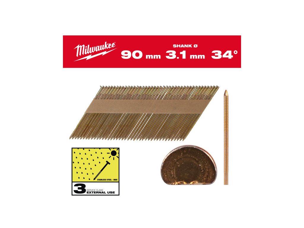 MILWAUKEE Stavebné sponky, D-hlava, pozinkované 34° SC3 - 3,1 x 90 mm (2200 ks/bal)