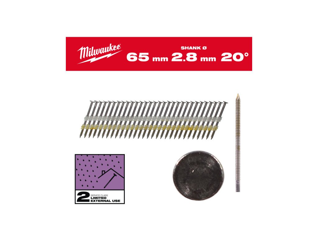 MILWAUKEE Stavebné sponky, guľatá hlava, pozinkované 20° SC2 - 2,8 x 65 mm (2000 ks/bal)