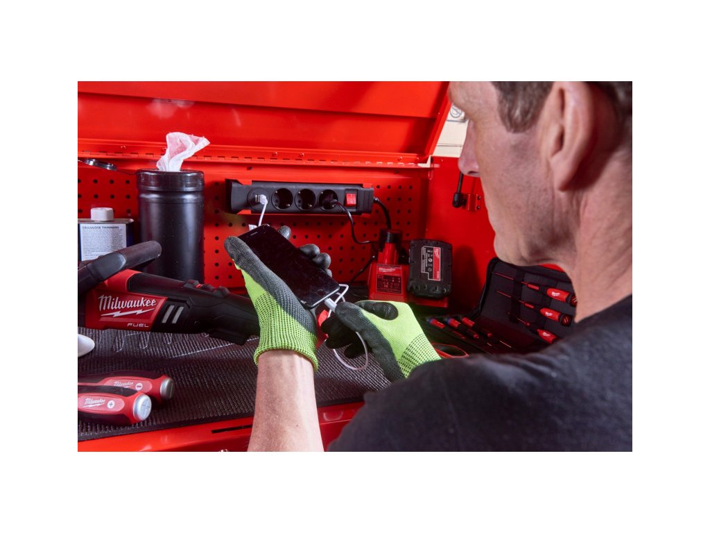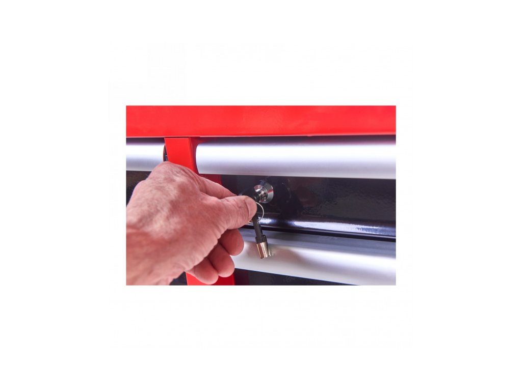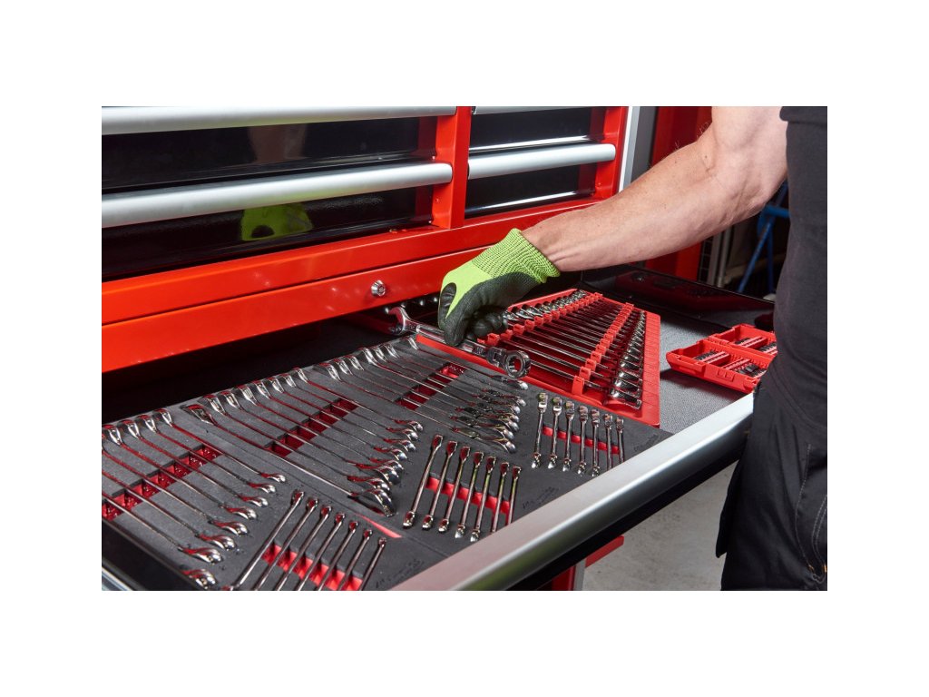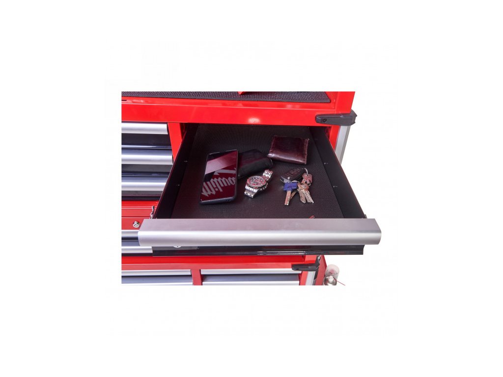 Vlastnosti Zásuvky s mäkkým zatváraním s nosnosťou do 45 kg Spodná zásuvka s nosnosťou do 90 kg Všetky zásuvky sú vybavené protišmykovými podložkami Chrániče rohov proti nárazu Magnetický rozdeľovač umožňuje nabíjanie batérií priamo na skrinke Výklopná polica na odkladanie fliaš a sprejov Zabudovaný otvárač na fľaše Pre elektrické náradie usporiadané v spodnej zásuvke 150 mm kolieska (2 pevné, 2 s otočnými brzdami) Nosnosť 1360 kg Technické údaje Rozmery [Vnútorný][V x Š x H | mm] horná zásuvka (2x): 70,1 x 1053 x 497; ľavá malá zásuvka (3x): 70,1 x 648 x 497; ľavá veľká spodná zásuvka (1x): 232,1 x 648 x 497; pravá malá zásuvka (3x): 70,1 x 338 x 497; pravá veľká spodná zásuvka (1x): 232,1 x 338 x 497 Rozmery (mm) 1170 x 562 x 982 Množstvo v balení1 Číslo výrobku 4932478852 EAN kód 4058546361341 Hmotnosť (kg) 148