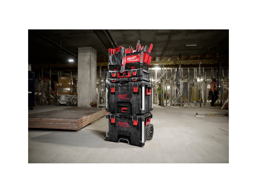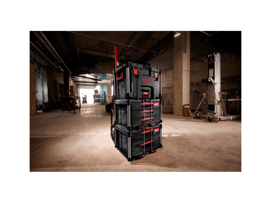 Vlastnosti Extra úložná kapacita pre veľké elektrické náradie, ako sú pásové píly, uhlové brúsky a kladivá Nosnosť 45 kg Súčasť modulárneho úložného systému PACKOUT™ Vyrobené z nárazuvzdorných polymérov IP65 s odolnosťou na pracovisku Tesnenie odolné voči poveternostným vplyvom a nečistotám Vystužený kov rohy Vnútorné prepážky pre drobné príslušenstvo Miesto montáže ONE-KEY™ TICK™ Technické údaje Rozmery [Vnútorný][V x Š x H | mm]353 x 485 x 371 Rozmery (mm)422 x 554 x 394 Množstvo v balení1 Nosnosť (kg)45 Číslo výrobku4932478162 EAN kód4058546340957