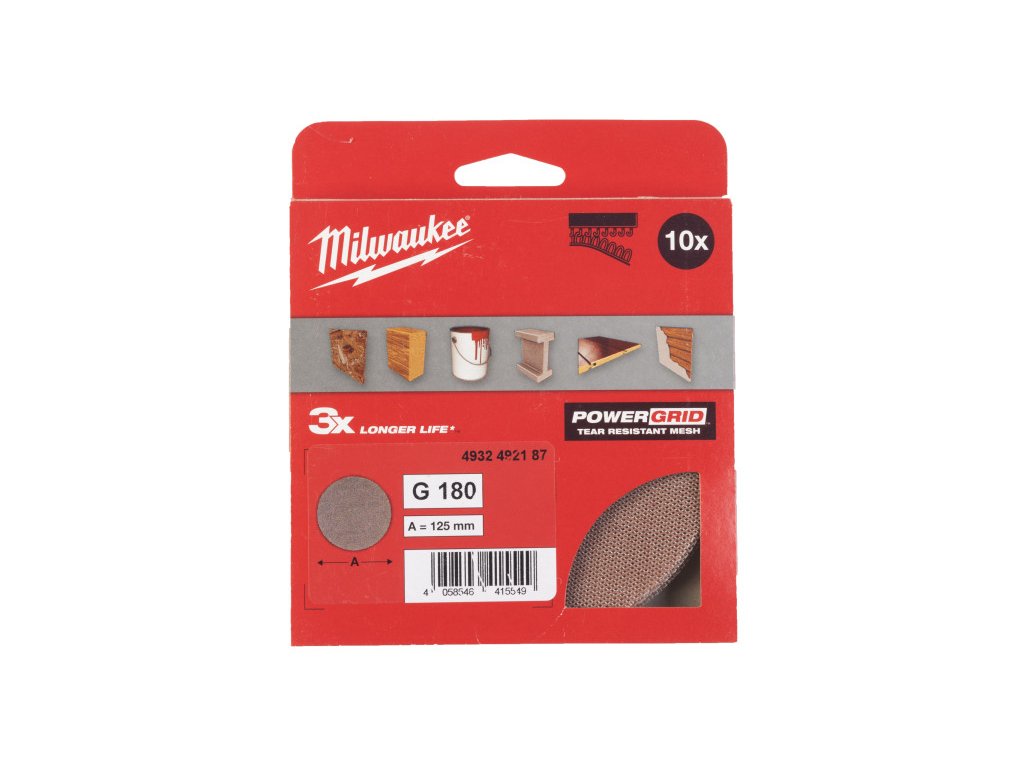 MILWAUKEE Suchý zips brúsiaci papier PG 125 mm / P180 (10 ks/bal)
