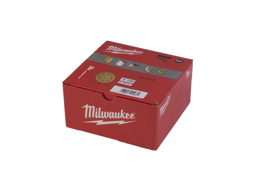 MILWAUKEE Suchý zips brúsiaci papier HP 125 mm / P120 8 dierový (50 ks/bal)