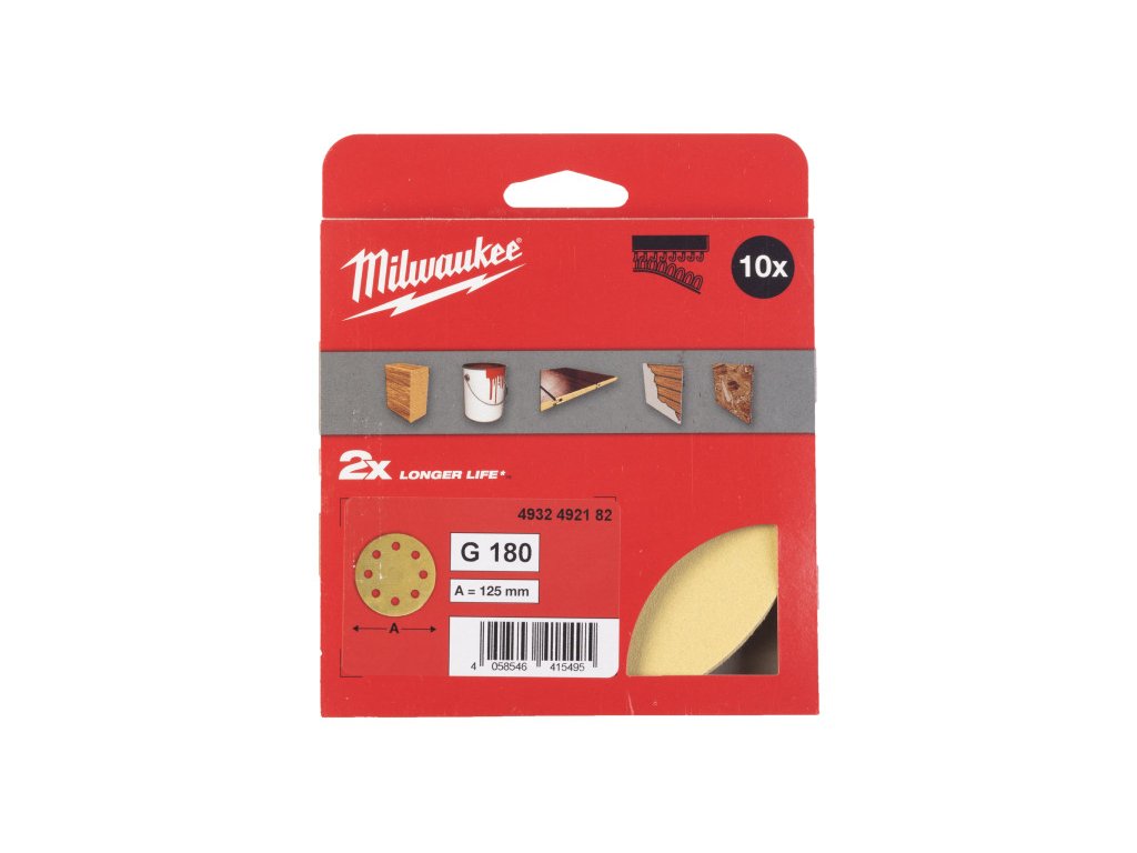 MILWAUKEE Suchý zips brúsiaci papier HP 125 mm / P180 8 dierový (10 ks/bal)