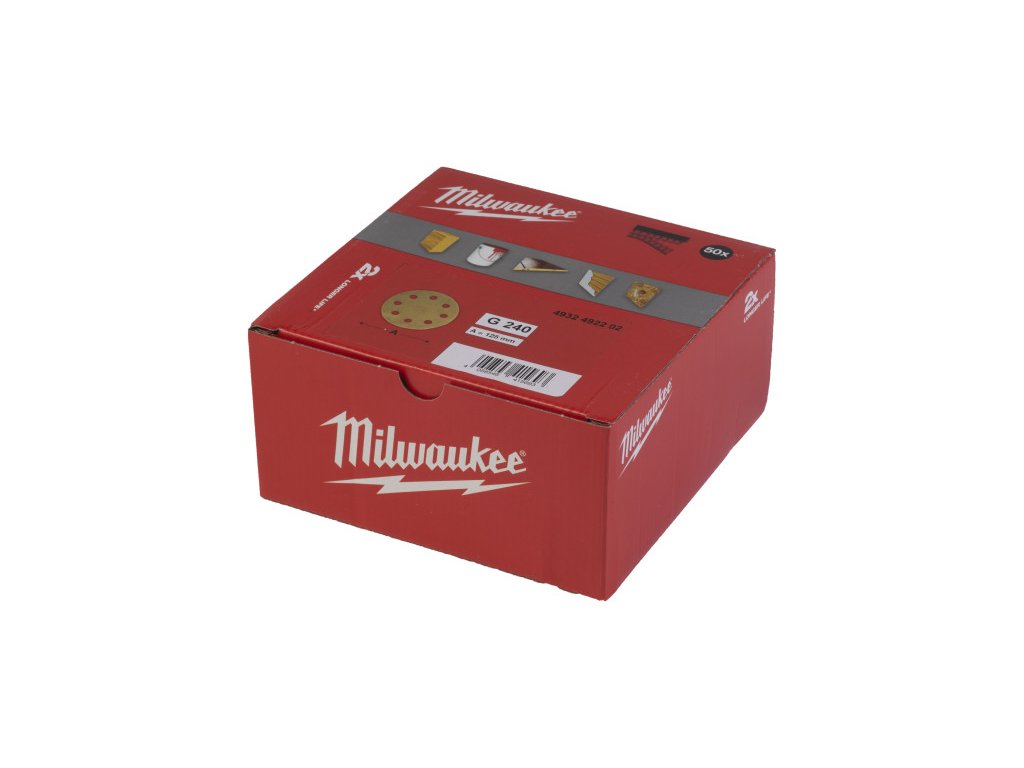 MILWAUKEE Suchý zips brúsiaci papier HP 125 mm / P240 8 dierový (50 ks/bal)