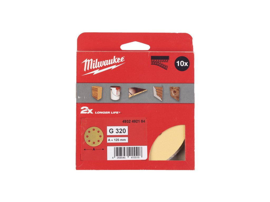 MILWAUKEE Suchý zips brúsiaci papier HP 125 mm / P320 8 dierový (10 ks/bal)