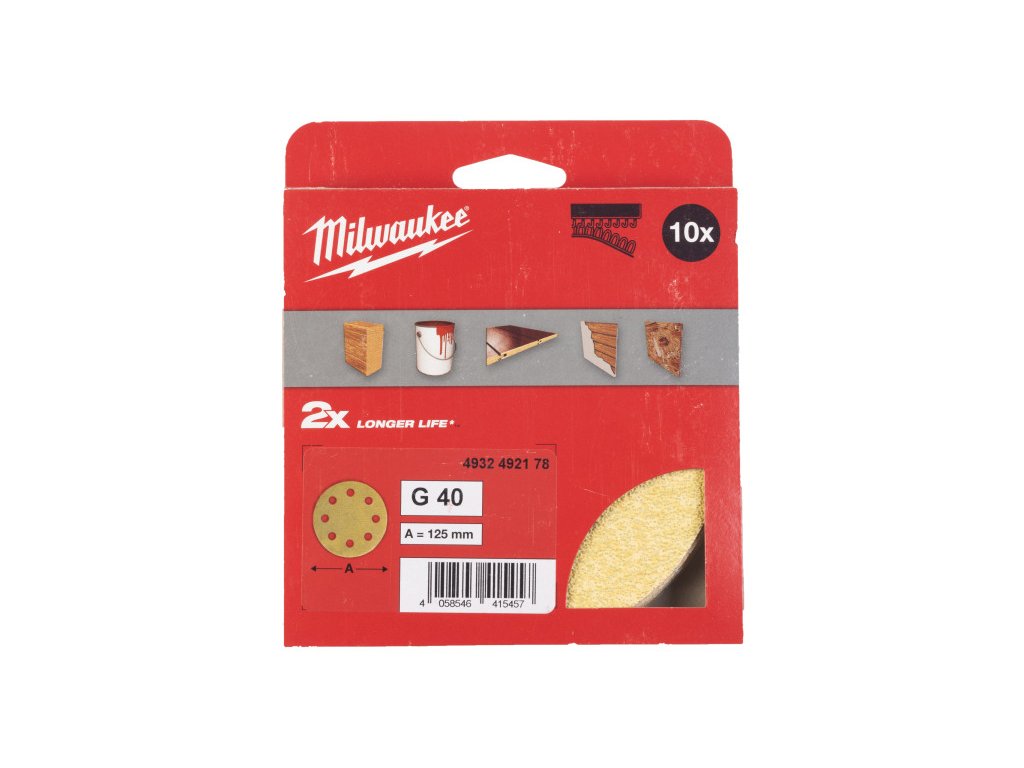 MILWAUKEE Suchý zips brúsiaci papier HP 125 mm / P40 8 dierový (10 ks/bal)