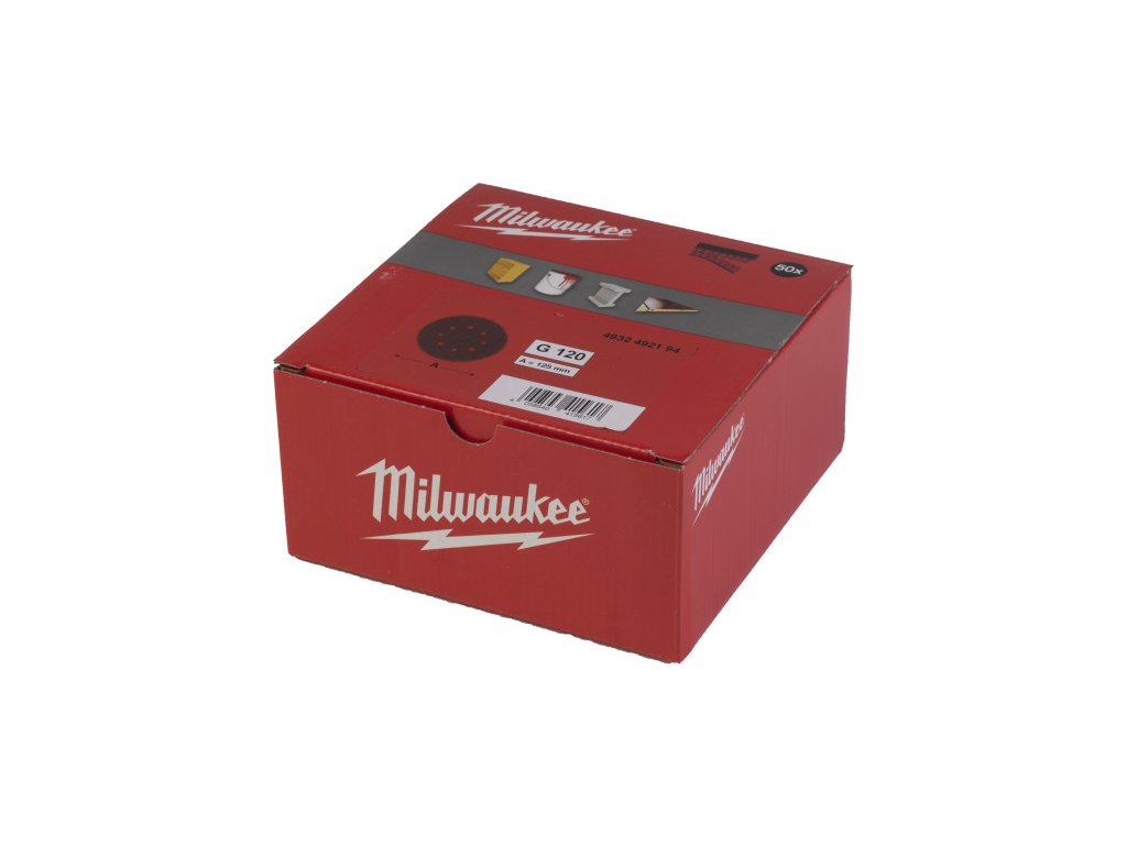 MILWAUKEE Suchý zips brúsiaci papier STD 125 mm / P120 8 dierový (50 ks/bal)