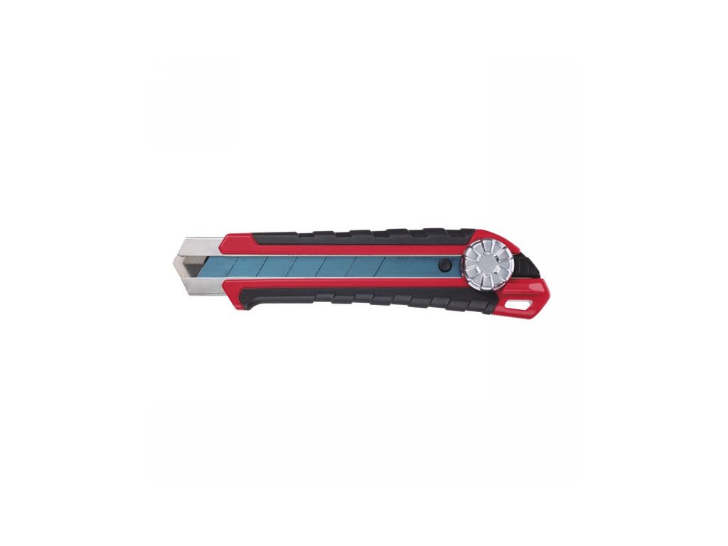 Vlastnosti Kovový zámok* pre max pre odolnosť a dlhú životnosť Skrutkové upevnenie*, ktoré umožňuje rýchle nastavenie čepele Posuvný automatický zámok** pre rýchlejšie nastavenie čepele Čepeľ, ktorú možno rozlomiť na časti** Pogumovaná a chemikáliám odolná rukoväť, protišmyková rukoväť čepeľ z mikrokarbidu dlhšie životnosť, čisté rezy * 18/ Nôž s lámacou čepeľou 25 mm **Nôž s lámacou čepeľou 9 mm Technické údaje Množstvo v balení1 Šírka (mm)25 Počet lámacích bodov7 Číslo výrobku48221962 EAN kód045242296828