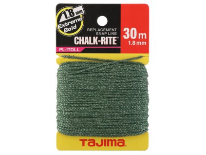 1,8 mm x 30 m Náhradná šnúra Premium Extreme Bold pre náradie na kriedové linky TAJIMA Chalk-Rite DURA II CR503S. Vyrobené z pleteného polyesteru A nylonové nite dĺžka 30 m