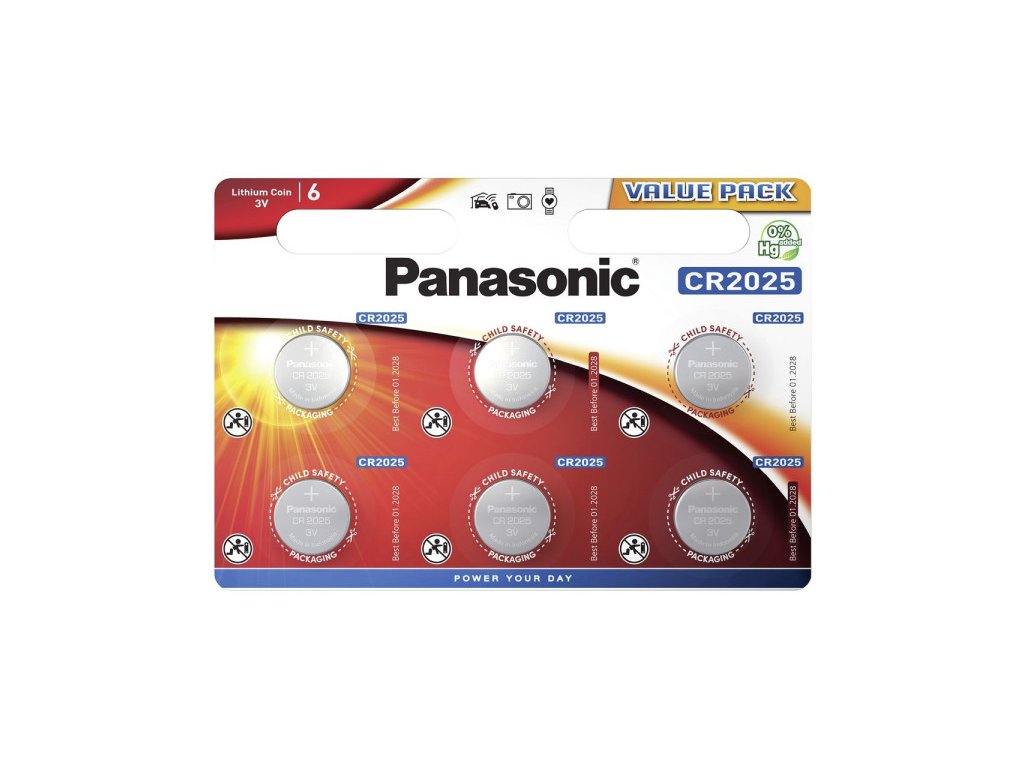 PANASONIC CR2025 lítiová gombíková batéria 3 V (6 ks/bal)