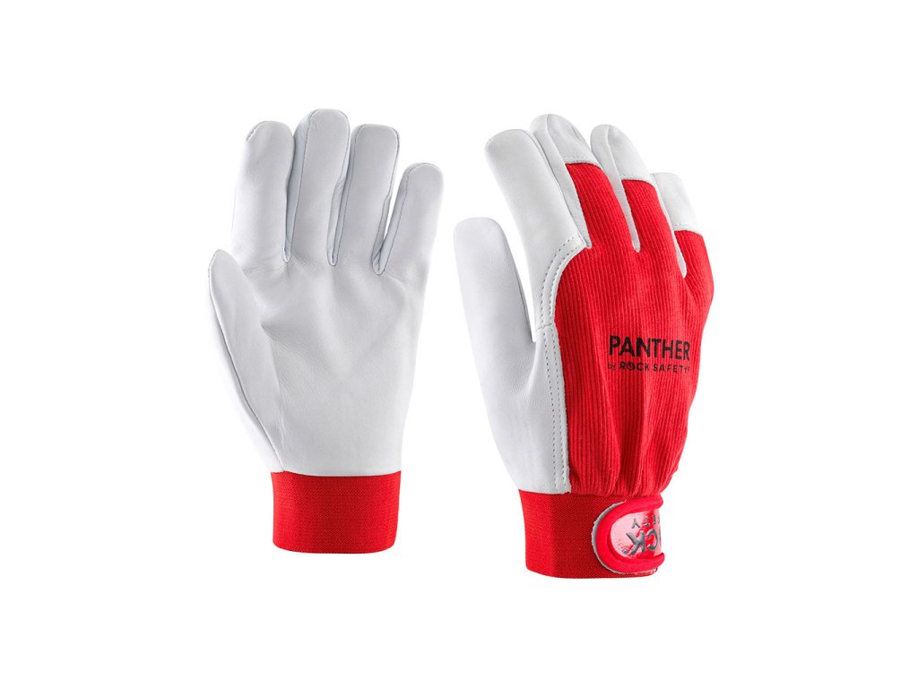 Šedobiele rukavice z kozej kože s červeným chrbtom
