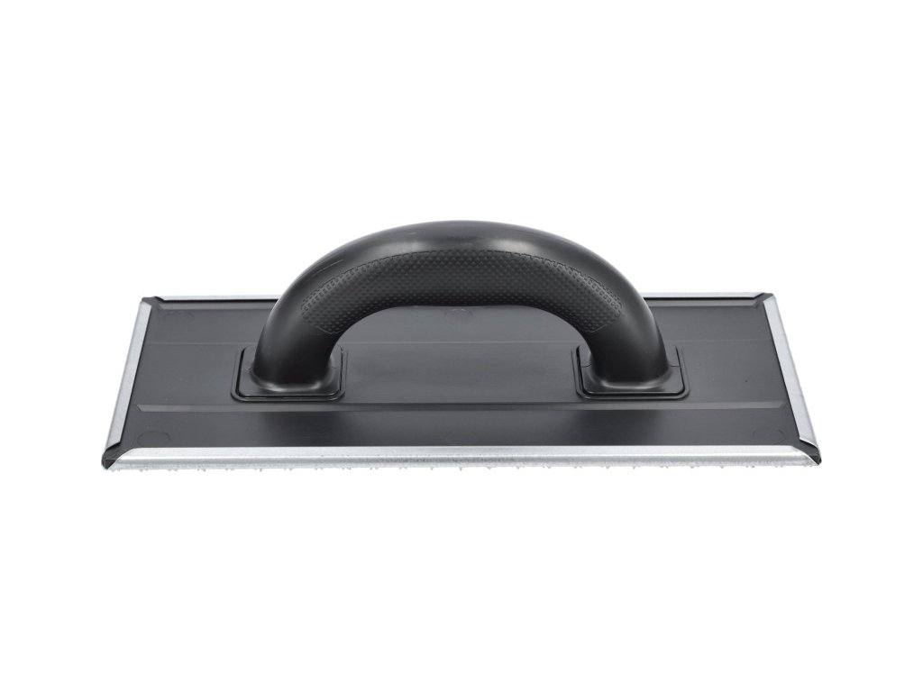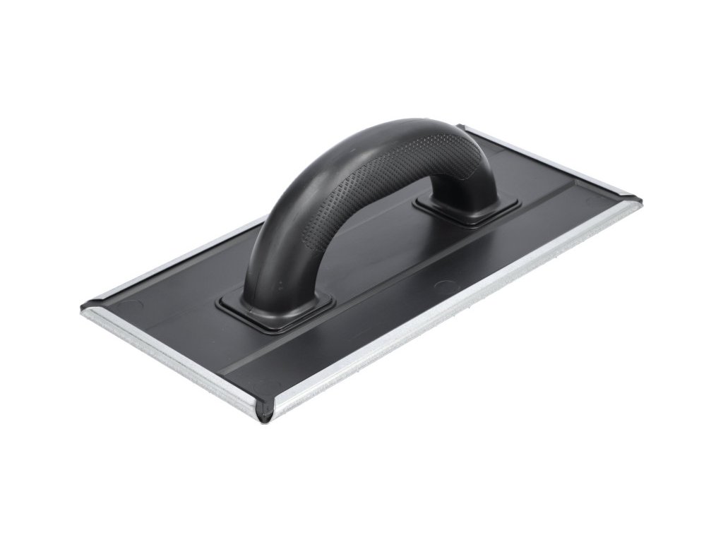 Műanyag vakolókanál 130x270 mm méretekkel. A munkarész galvanizált lemezzel van bevonva, amelyen egy különlegesen készült tartós reszelő található polisztirol lemezek megmunkálásához.