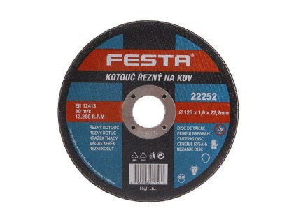 Technické údaje: priemer: 125 mm vnútorný priemer: 22,2 mm hrúbka: 1,6 mm max otáčky: 12 200 ot./min. použitie: nehrdzavejúca oceľ (Inox), oceľ, kov