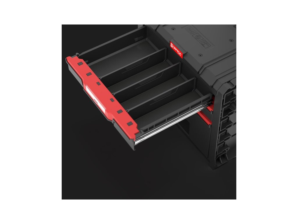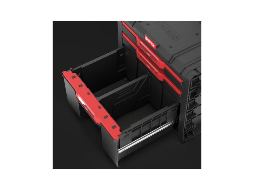 A Qbrick System PRO Drawer 3 Toolbox Expert egy tágas és moduláris szerszámtároló, amely három fiókkal rendelkezik, melyek fém síneken csúsznak ki. A kényelmes nyomógombos nyitórendszer lehetővé teszi a tartalom gyors és egyszerű elérését.