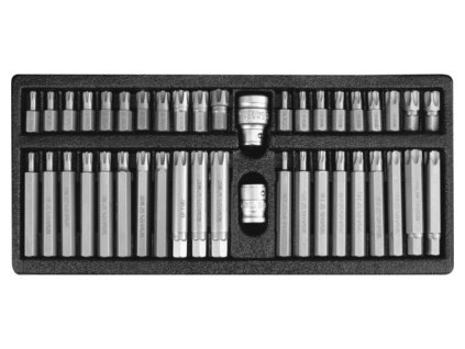 Sada obsahuje: 25 mm skrutkovací bit: PH1; PH2 (2 ks) PZ2; PZ3T10; T15; T20; T25; T30; Skrutkovací bit T40SL5,555 mm: PZ2T20; skrutkovací bit T2590 mm: PH2T20; T25; Držiak bitov...
