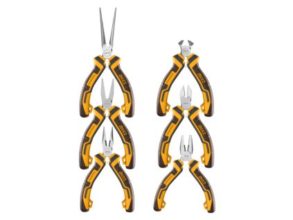 Rozmery:, kombinované kliešte: 200 mm (8), kliešte s dlhým nosom: 160 mm (6), kliešte bočné: 160 mm (6) Cr-V, čierny oxidový povlak, leštená 2-farebná TPR rukoväť Rozsah...