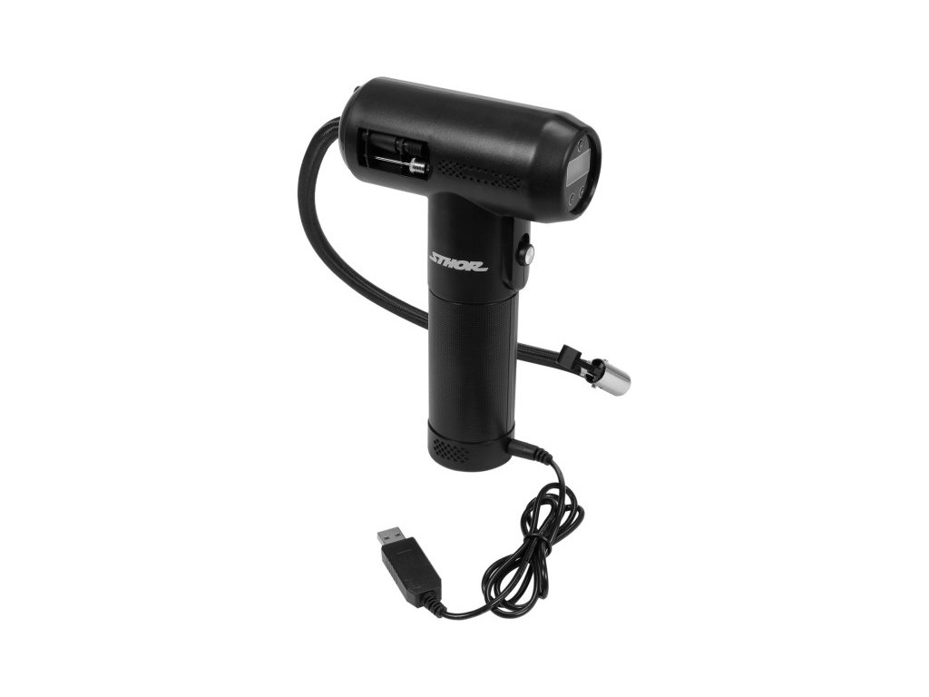 Vezeték nélküli kompresszor digitális LED nyomásmérővel. Beépített, USB csatlakozáson keresztül tölthető akkumulátorral működik. A kompresszor autók, biciklik, quadok kerekeinek felfújására, labdák felfújására stb. hasznos. Kompakt méretének köszönhetően a készülék kézre álló és könnyen tárolható. A készülék automatikusan leáll, amikor eléri a beállított nyomást. A kompresszorban beépített töltöttségi jelző található. A beépített munkahelyi világítás megkönnyíti a sötétben történő munkát.