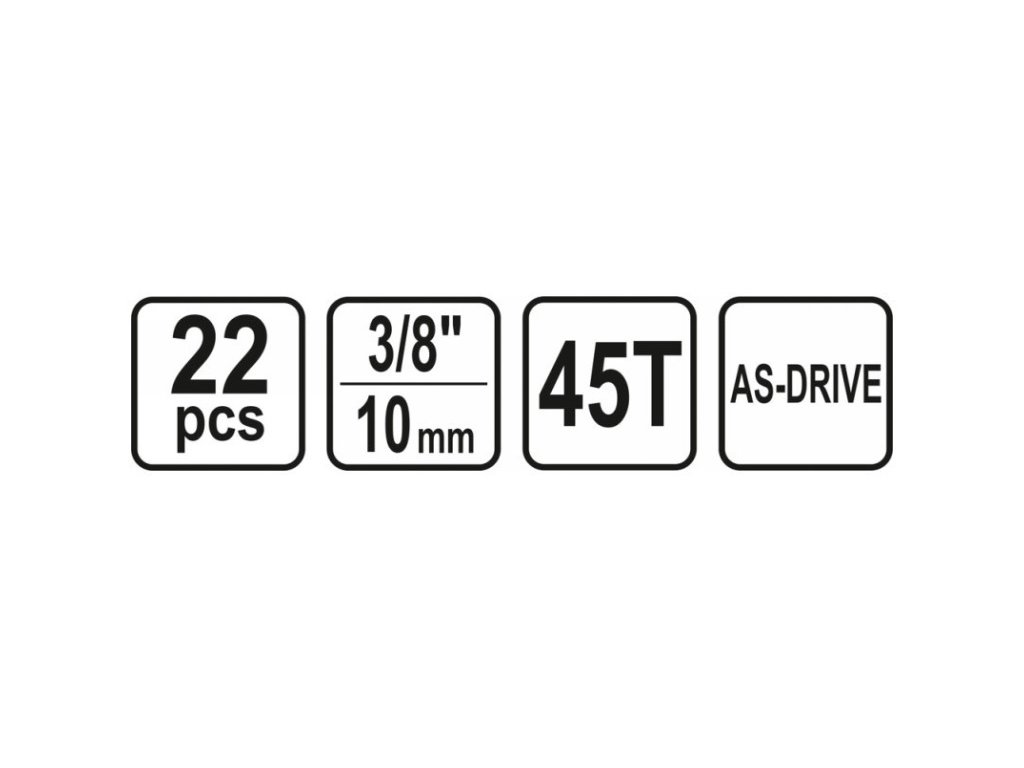 • 3/8 nástrčné kľúče: 6; 7; 8; 9; 10; 11; 12; 13; 14; 15; 16; 17; 18; 19; 20; 21; 22 mm