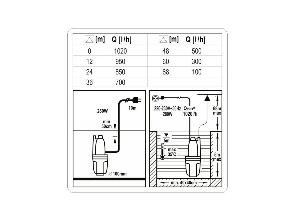 Elektrické ponorné čerpadlo 280 W STHOR