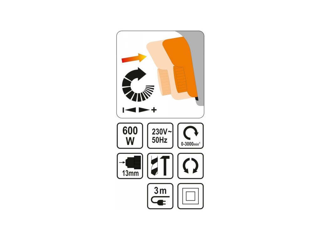 Elektrická príklepová vŕtačka 13 mm 600 W STHOR