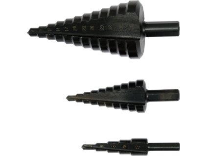 YATO Súprava stupňovitých vrtákov 3 diely nerez