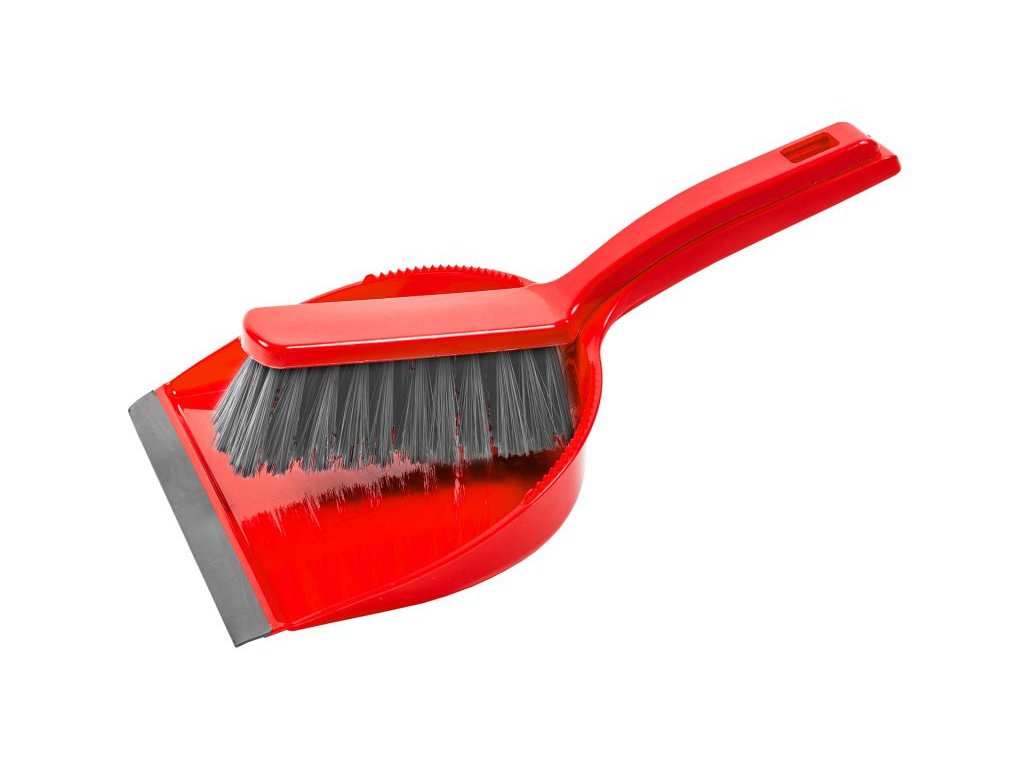 Lopata na odpadky s gumeným okrajom + metla, červená