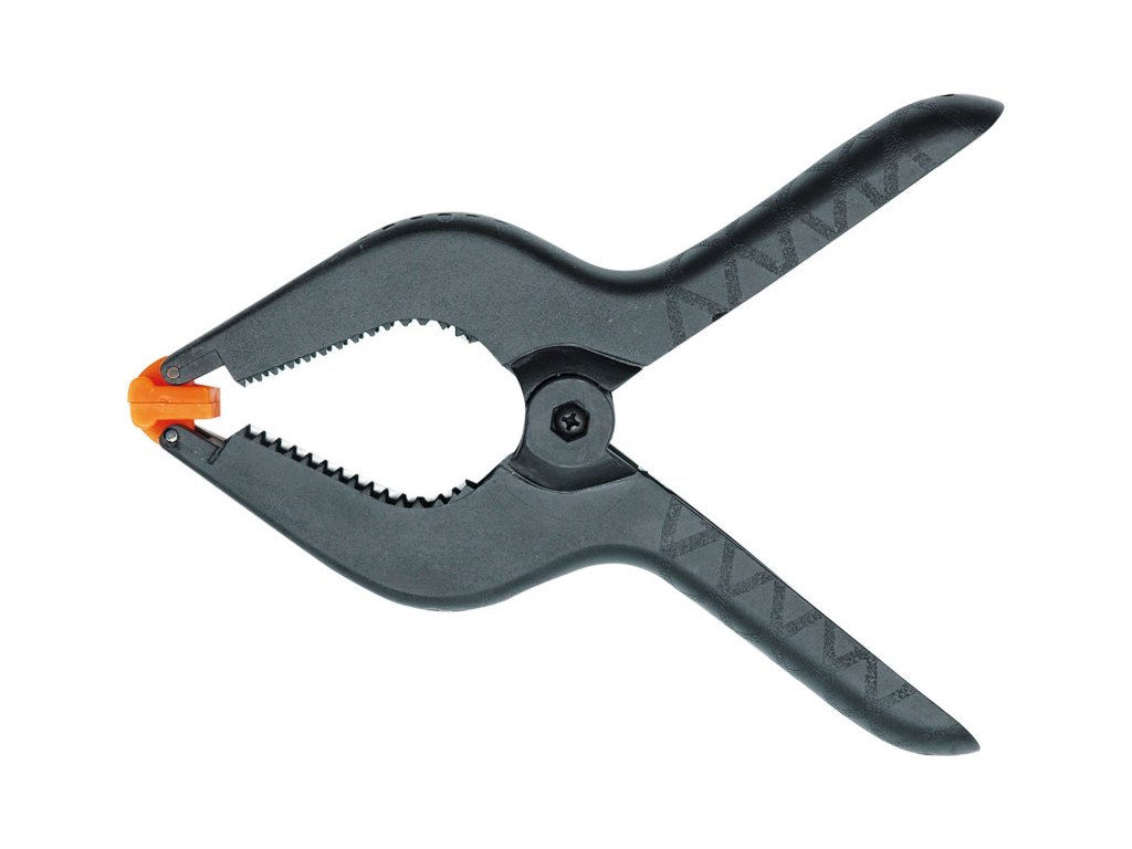 Rugós csipesz 150 mm. Ellenálló műanyagból készült kompressziós csipesz erős acélrugóval. Az ingafüggesztésű szájak lehetővé teszik a pontos beállítást az anyagra.