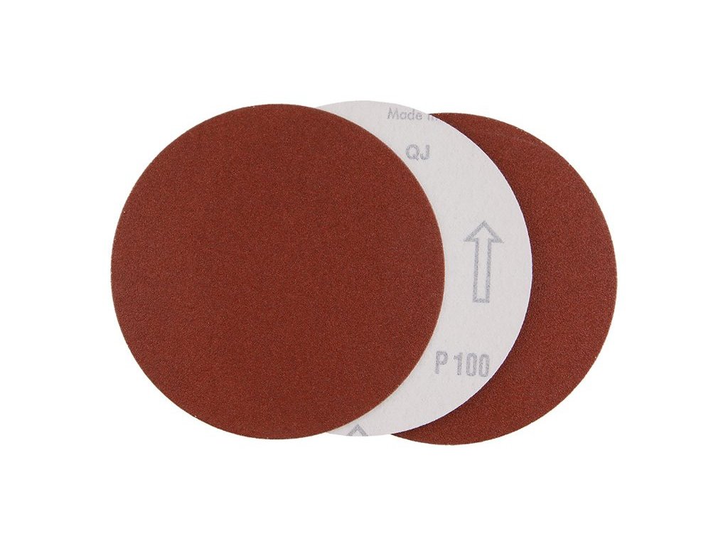 Sanding paper - set of 3 pieces, fastening: Velcro, diameter 125 mm, grit: 100, type of grain: corundum - semi-open sprinkler, binder: semi-resin, backing material: paper E (240-260g/m2), (can be used in combination with items: 22060, 22064), packaging: paper blister with euro hole.