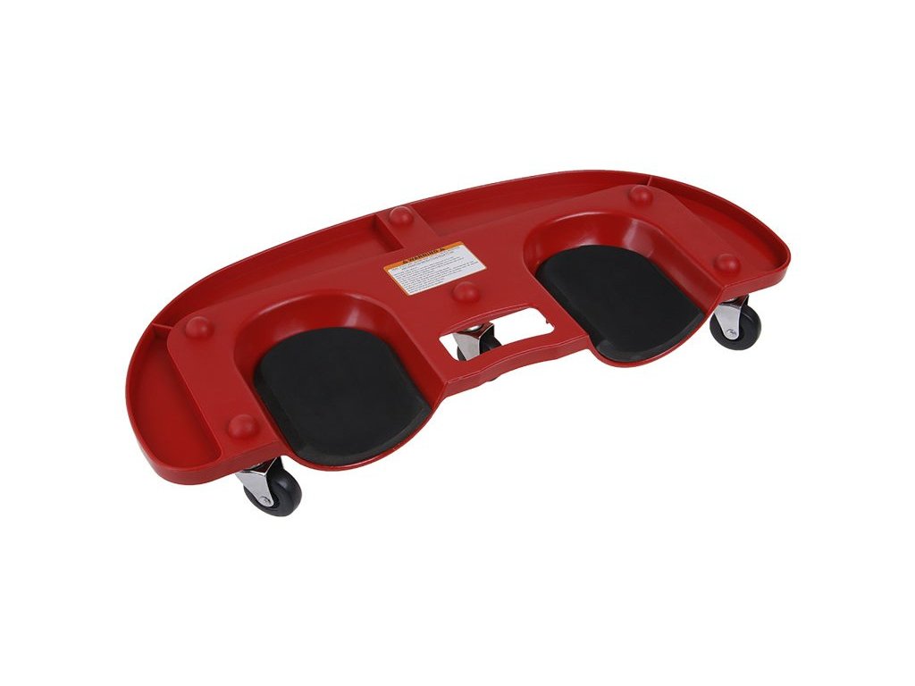 Movable kneeling chair, durable molded plastic, ergonomic shaping, gel layer in the knee pads, six rotating wheels spaced for good weight distribution - simple, comfortable and quick movement, practical handle for easy carrying, packaging: paper box.
