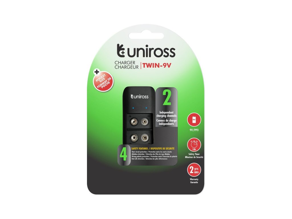 Bloková nabíjačka batérií UNIROSS s 2 zásuvkami 9 V